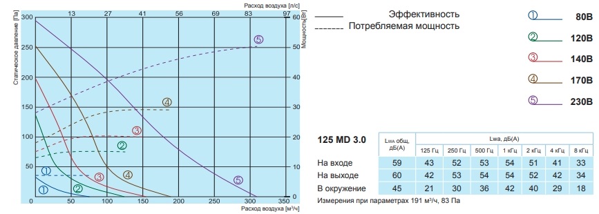 Аэродинамические характеристики Канальный вентилятор Salda VKAР 125 MD 3.0
