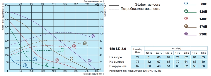 Аэродинамические характеристики Канальный вентилятор Salda VKAР 150 LD 3.0
