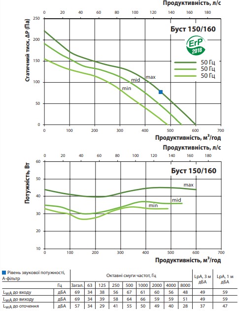 Аэродинамические характеристики Канальный вентилятор VENTS БУСТ 150/160