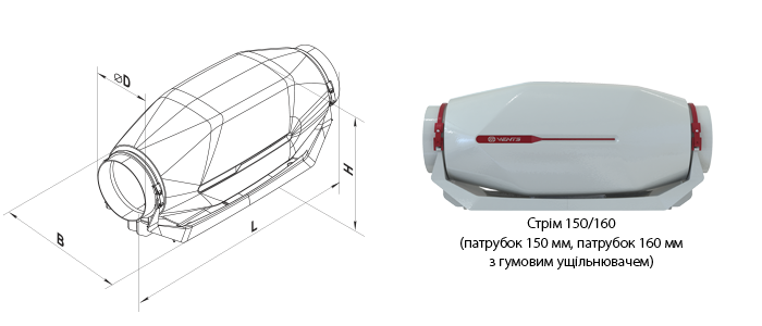 Габаритные размеры Канальный вентилятор VENTS Стрім 150/160