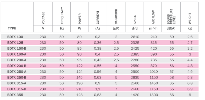Описание Вентилятор BVN BDTX 100