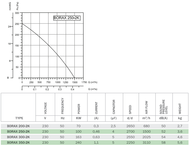 Описание Вентилятор BVN BORAX 250-2К