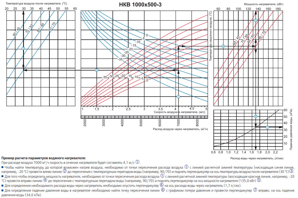 Аэродинамические характеристики Водяной нагреватель ВЕНТС НКВ 1000x500-3