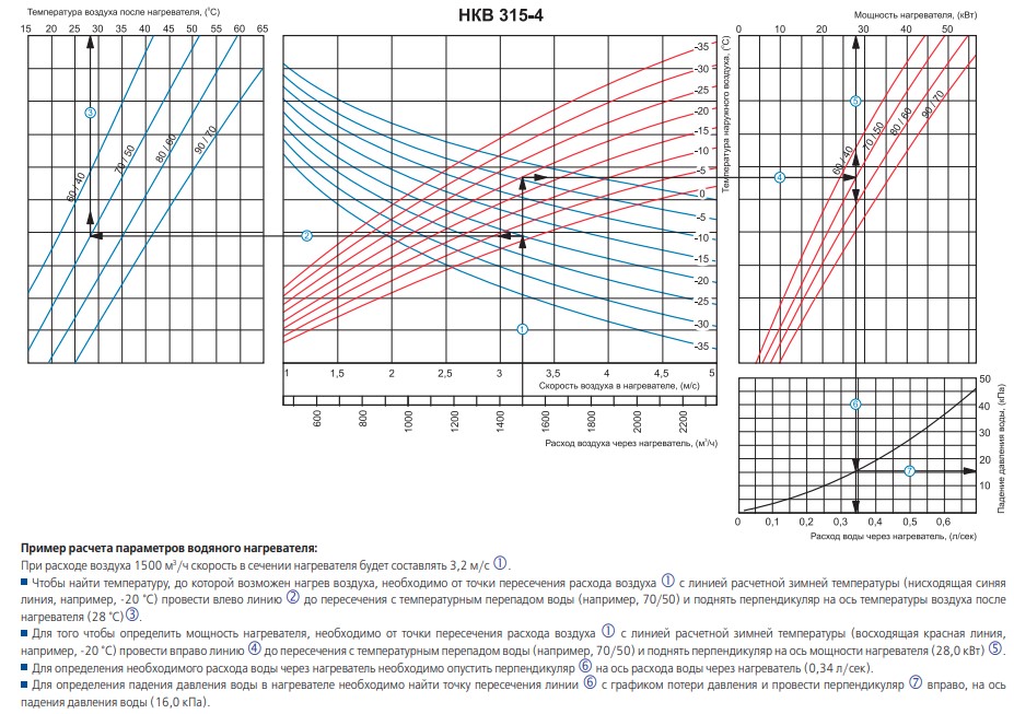 Аэродинамические характеристики Водяной нагреватель ВЕНТС НКВ 315-4