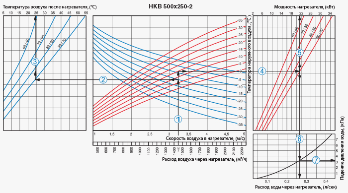 Аэродинамические характеристики Водяной нагреватель ВЕНТС НКВ 500x250-2