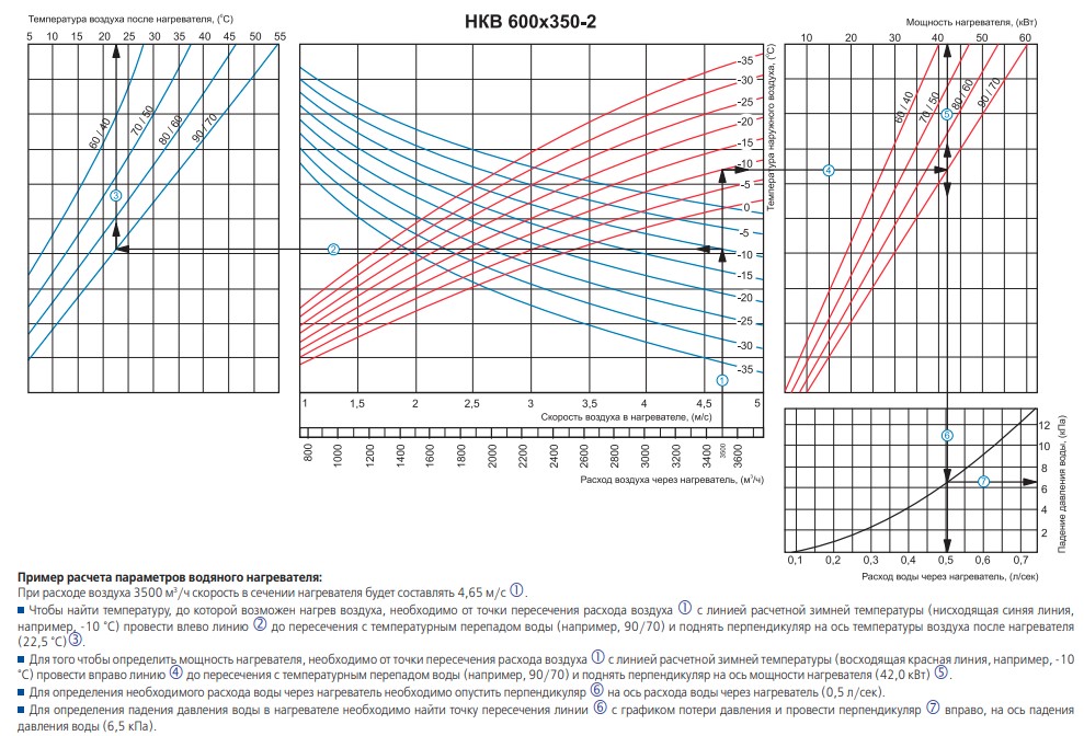 Аэродинамические характеристики Водяной нагреватель ВЕНТС НКВ 600x350-2