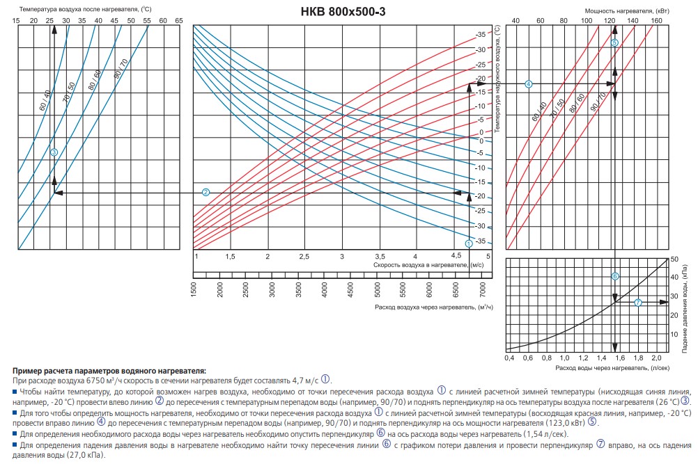 Аэродинамические характеристики Водяной нагреватель ВЕНТС НКВ 800x500-3