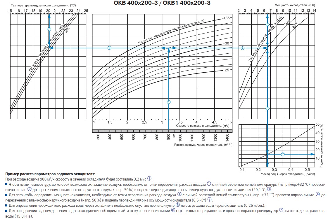 Аэродинамические характеристики Водяной охладитель ВЕНТС ОКВ 400x200-3