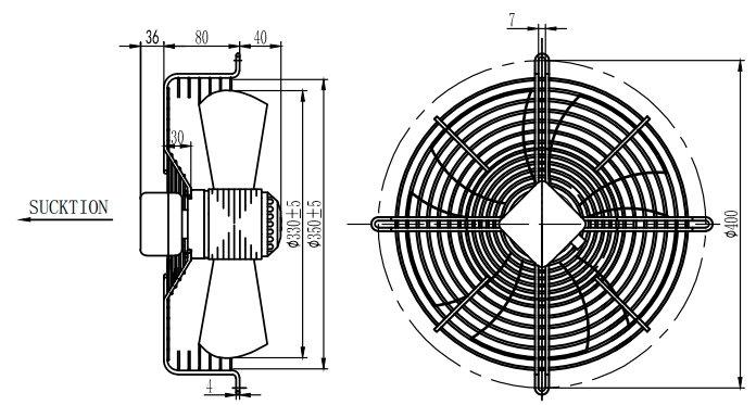 Сетка и крыльчатка вентилятора изготовлены из стали, покрытой термо-реактивным порошковым покрытием.