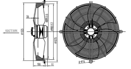 Сетка и крыльчатка вентилятора изготовлены из стали, покрытой термо-реактивным порошковым покрытием.