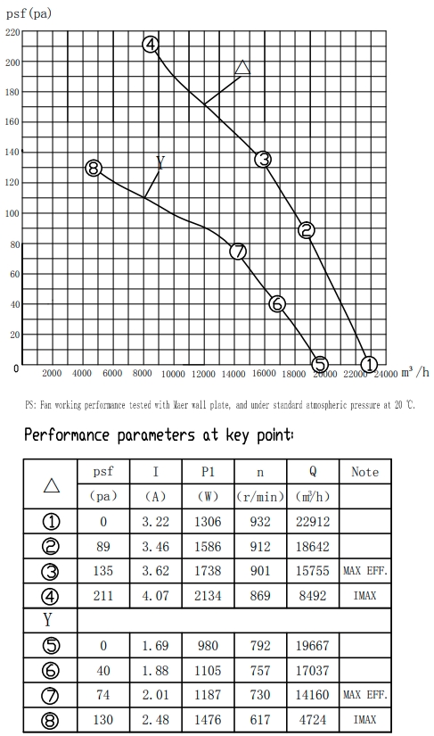 Аэродинамические характеристики Осевой вентилятор MAER 6D-900-B