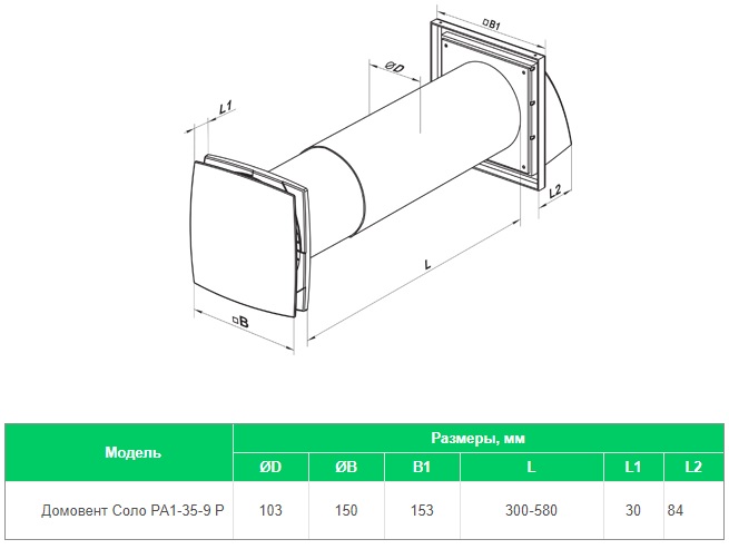 - Домовент СОЛО РА1-35-9 Р для тонких и толстых стен