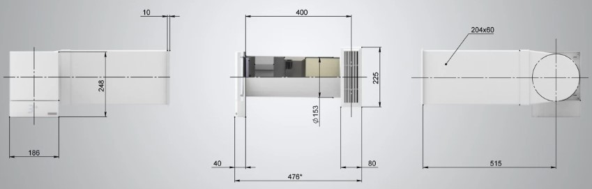 Габаритные размеры Рекуператор Ventoxx Invisible на базе Ventoxx Harmony