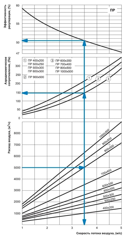Аэродинамические характеристики Рекуператор Вентс ПР 400х200