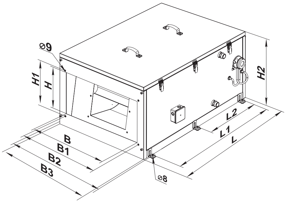 | Размеры | B | B1 | B2 | B3 | H | H1 | H2 | L | L1 |