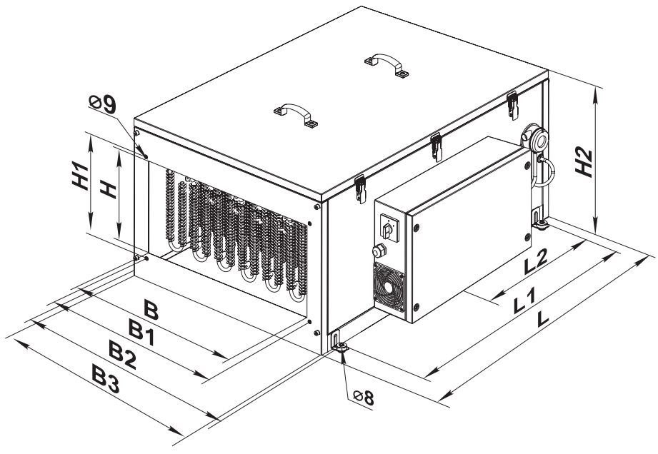 | Размеры | B | B1 | B2 | B3 | H | H1 | H2 | L | L1 |