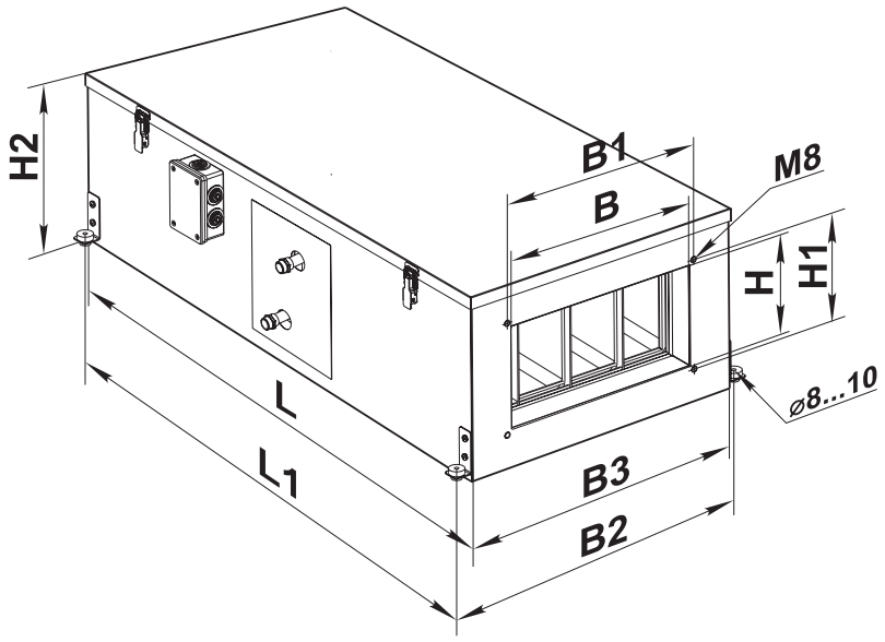 | Размеры | B | B1 | B2 | B3 | H | H1 | H2 | L | L1 |