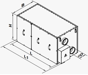 Приточно-вытяжная установка монтируется на горизонтальной поверхности, подвешивается к потолку, крепится на стене с помощью кронштейнов. Доступ для сервисного обслуживания - со стороны сервисных панелей.