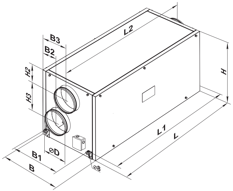 | Размеры | ?D | B | B1 | B2 | B3 | H | H2 | H3 | L | L1 | L2 |