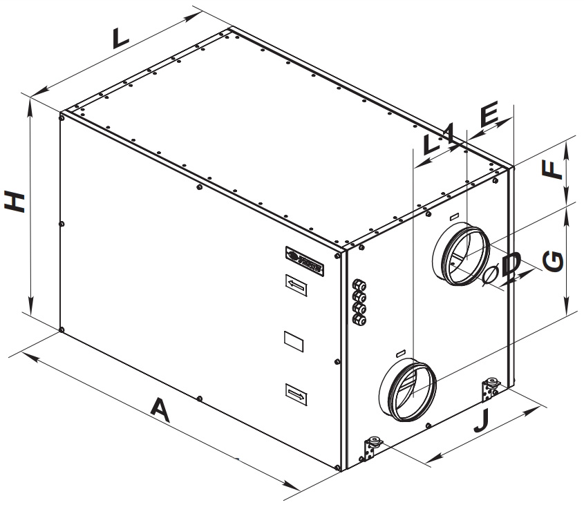 Доступ для сервисного обслуживания - со стороны боковой панели, слева (по ходу приточного воздуха).