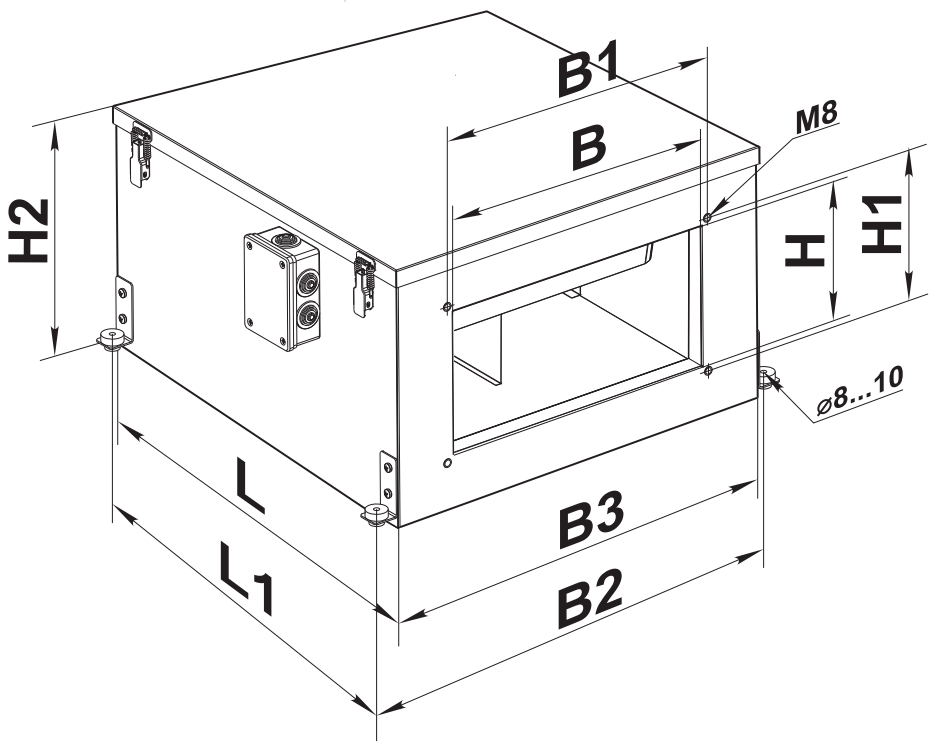 | Размеры | B | B1 | B2 | B3 | H | H1 | H2 | L | L1 |
