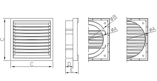 Габаритные размеры решетка квадратная Dospel KR Ø100/125