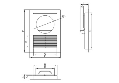 Габаритные размеры решетка квадратная Dospel D/14 OW Ø125