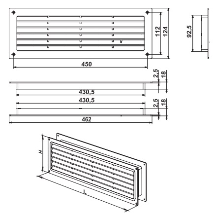Может оснащаться защитной сеткой от насекомых или подвижной заслонкой для регулировки расхода воздуха.
