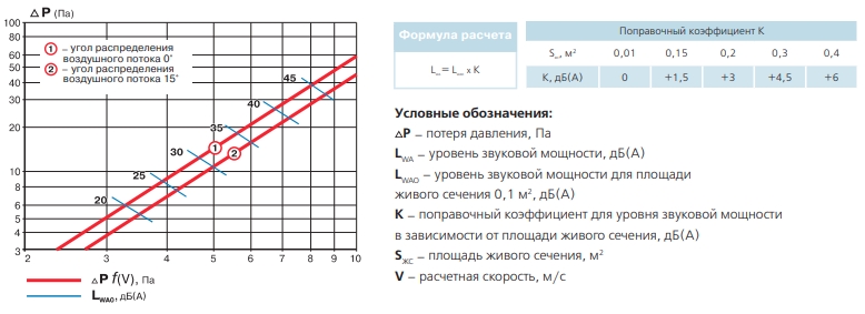 Аэродинамические характеристики Решетка Вентс ОНК 1 450x450
