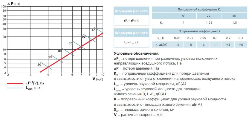 Аэродинамические характеристики Решетка Вентс ОРВ 150x500
