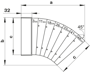 В зависимости от выбранного угла одна сторона соединителя подрезается (соединение с плоским каналом через соединитель соответсвующего сечения).