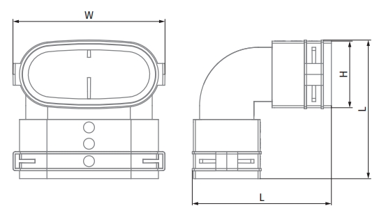 Колено овальное вертикальное ФлексиВент 060352 для приточно-вытяжных систем вентиляции жилых помещений. Для соединения воздуховодов 117×52 мм вертикально под углом 90°.