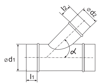 Габаритные размеры Тройник угловой ВЕНТС 45° 200