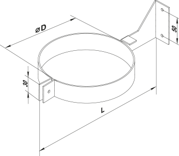 Изготовлен :хомут изготовлен из полосы оцинкованной стали, уплотненно с внутренней стороны микропористой резиной для улучшения герметизации соединений и снижения вибрации. Хомут изготовлен с возможностью крепления к стене или потолку.