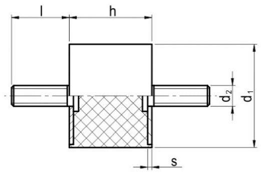 Виброизолятор этого типа представляет собой резино-металлическую опору, в которой резина используется в качестве виброгасящего материала. Поставка производится отдельными комплектами. Кроме самих виброизоляторов, в комплект входят болты и гайки для крепления к опорной раме вентилятора. Количество виброизоляторов в комплекте определятся в зависимости от общей массы вентилятора. Резиновые виброизоляторы отличаются от пружинных повышенной жесткостью.
