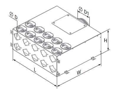 • Воздухораспределительные коробки изнутри облицованы шумоизоляционным слоем в 20 мм, что минимизирует шум в месте размещения.