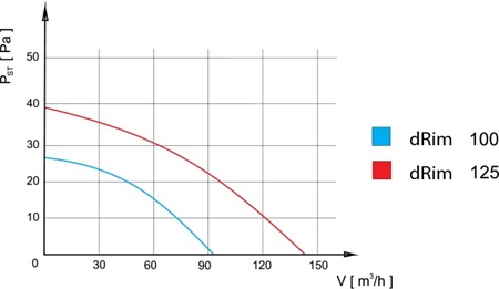 Аэродинамические характеристики Вытяжной вентилятор AirRoxy dRim 125 RMS BB
