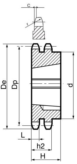 Габаритные размеры Звездочка под втулку SATI 19,05 12B-2 Z=20